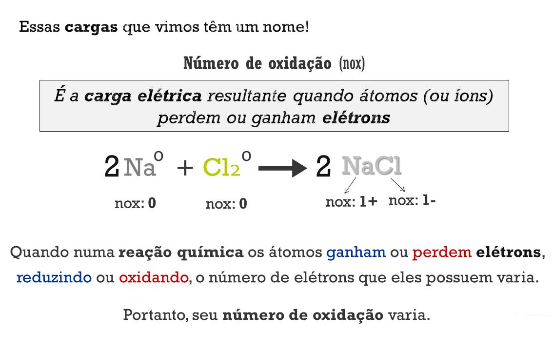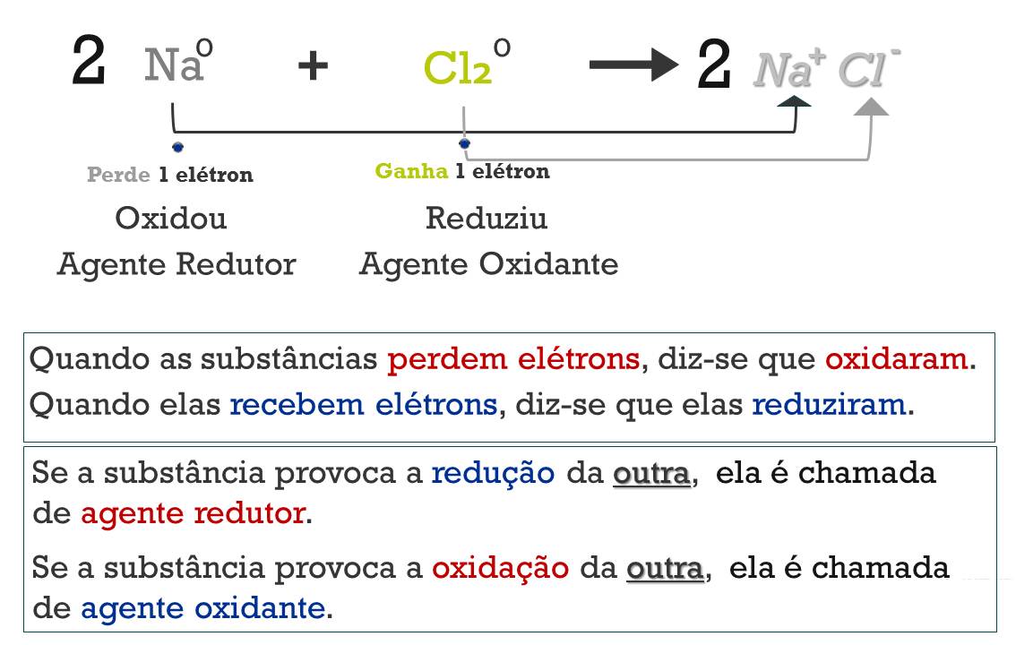 Depois, vemos os termos de oxidação e redução, agente oxidanteagente redutor e número de oxidação.