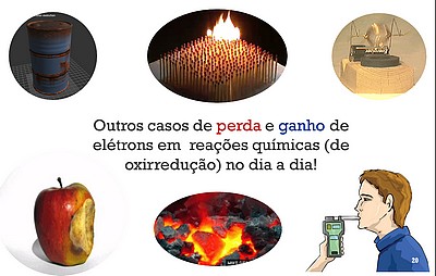 Em seguida, são dados outros exemplos com imagens animadas de reações de oxirredução no dia a dia.