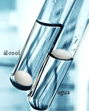 Na segunda aula propusemos a realização de dois experimentos. No primeiro, os alunos analisarão que a parafina (pode utilizar pedacinhos de vela, caso não disponha de parafina em bolinhas), ao ser colocada em dois líquidos transparentes desconhecidos (álcool e água), afunda no primeiro e flutua no outro líquido. Então, durante a aula e a realização das questões, verão que isso ocorre porque a parafina tem uma densidade intermediária entre esses dois líquidos.