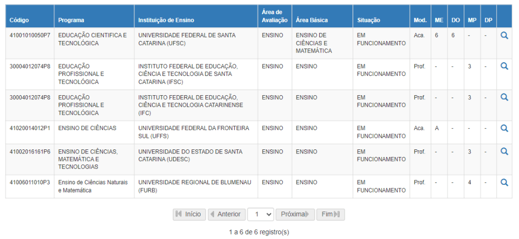 *Atenção: O programa que cursei é denominado por “Ensino de Ciências, Matemática e Tecnologias”, mas entrou como “ensino”, assim como a maioria dos cursos daqui de Santa Catarina. Ou seja, não aparece em “Ensino de Ciências e Matemática”. Quando fizer a busca, sugiro que pesquise nas duas áreas! Daí você pode olhar o nome do programa para ver se está dentro do que procura. 👍